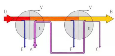 雙效直接加熱蒸發器的熱流圖如下所示: