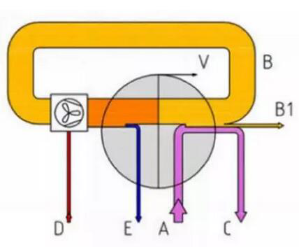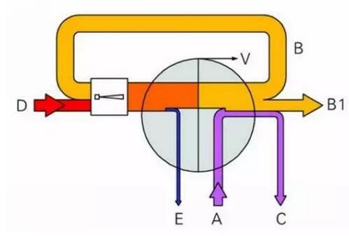 A產品,B二次蒸汽,B1殘余蒸汽,C濃縮液,D電能,E動力蒸汽冷凝水,V熱損失